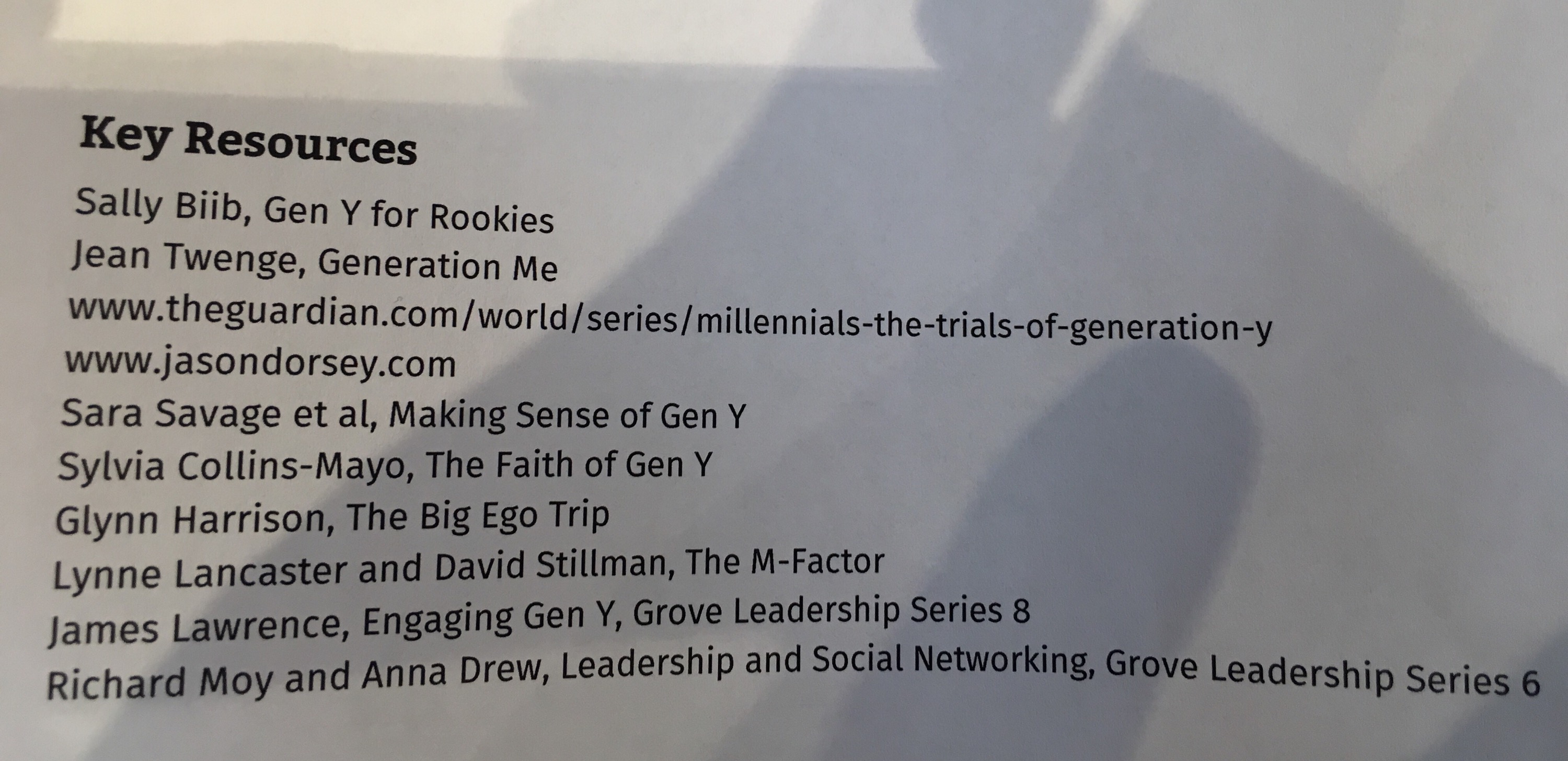 Gen Y have been brought up with assessment etc and a contractual mindset. This does not work for much ministry.