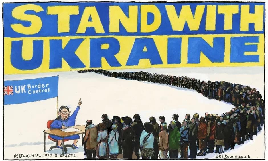 6. On a related note, I wouldn’t say no to the help of Ukrainians. Imagine you lived in a country where there was a deficit of workers able to help in one industry, for example agriculture/hospitality. Now imagine there was a huge number of displaced workers looking to contribute and make a life for themselves in a new country. One UK businessman had a business employing nearly 30 Ukrainians, which he will now seek to relocate to Spain not here, because he could only get one of the workers into the UK!