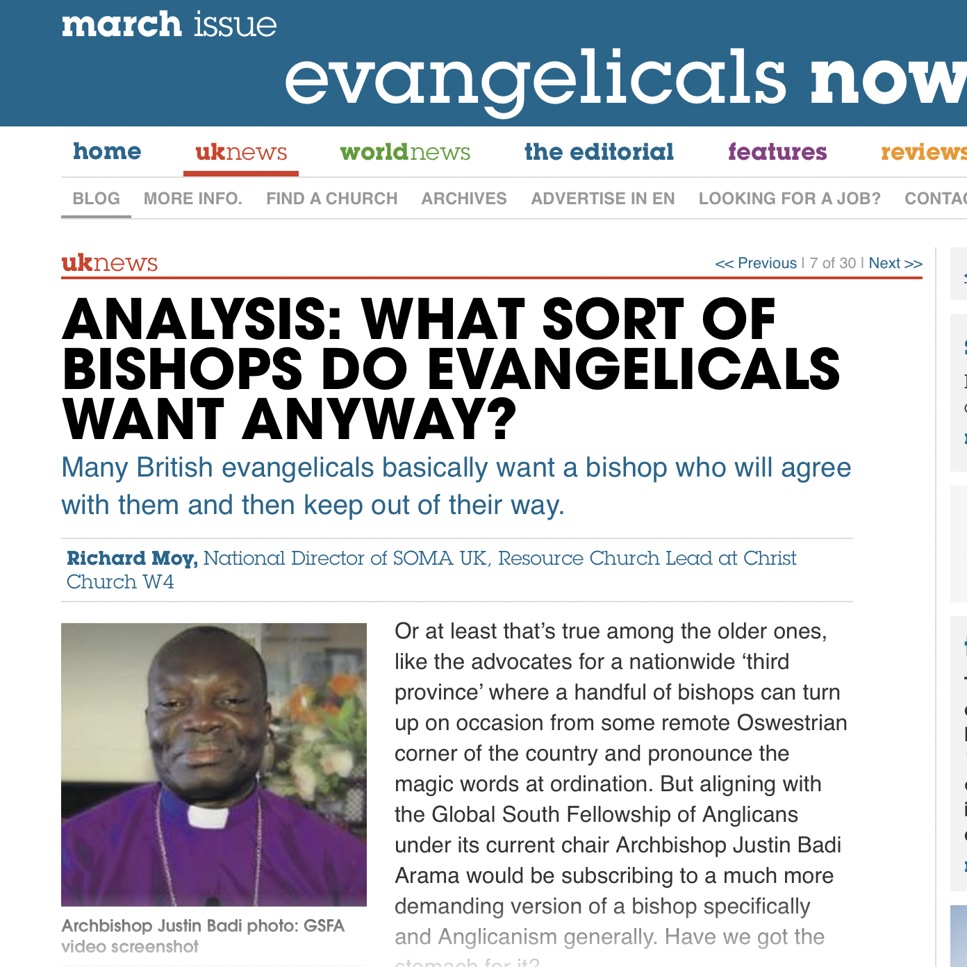 In South Sudan in January 2023 I spent some more time with Archbishop Justin Badi, our International Chair of SOMA and Chair of the GSFA as well. I watched (and learned) as he taught a series of SEAN facilitators a course on Anglican identity in the Episcopal Church of South Sudan. It struck me that for him Anglican is a vibrant identity. A badge you can unite around. A glorious consistent biblical vision. In the UK at best we laud the ‘breadth’ of the Church of England – but that has reached its elastic limit as its multiple religious systems pull it too far – or we say ‘its the best boat to fish from’ – but that establishment compromise is also nearing its natural ‘no-one can serve two masters’ conclusion.
