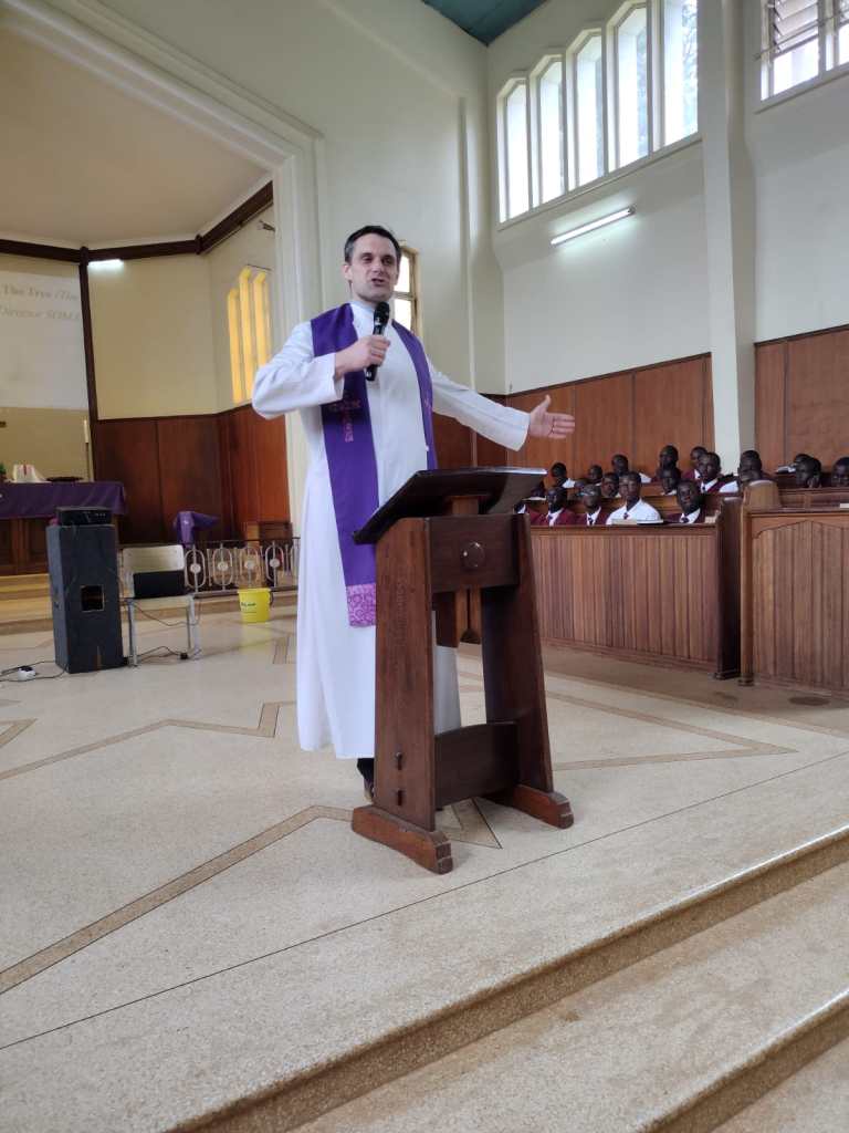 We finished a blessed day sharing a meal with SOMA veteran Rev Kennedy Wando and his lay minister Elias, alongside Rev Moses Kimani who had been our host, guide and ministry partner for the day. We returned to his Alma Mater, Lenana school named after a Maasai leader who had helped overthrown the colonial oppressors. The day had begun early with breakfast at the guest house prior to heading out for the morning service where I had the chance to give out more communion wafers to young men in the age bracket of 15-18 than probably received communion today in the whole Diocese of London.